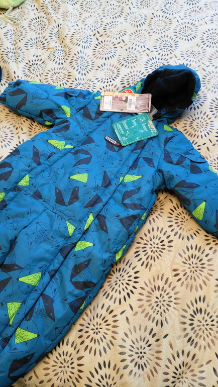 Рукавички и пинетки в комплекте. Не подошел размер, сейчас нам большой, на след год уже куплен комбез ранее.