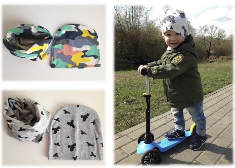 Комплект для ребенка в возрасте от года до 3 лет. Унисекс. Снуд хорошо тянется, однослойный. Размер шапочки 19 см. на 20 см. Шапочка двухслойная. Сезон весна-лето. Производство Китай. Новый в упаковке.