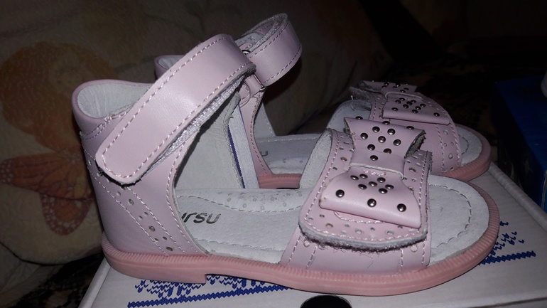 Продам "перехап": Нежно-розовые сандалики Mursy . летом были велики, а сейчас впритык уже, в садик не поносить уже. На ножку средней полноты, НЕ узкую. Кожа внутри и снаружи.