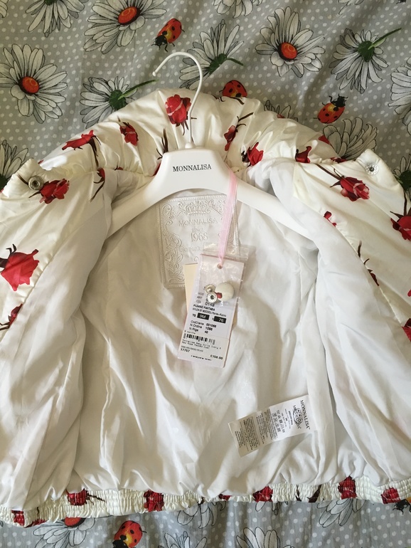 ПРАВИЛА - читать обязательно!!!Продаю совершенно новую курточку на малышку замечательной фирмы Monnalisa (оригинал), 75 см (9 мес), но на самом деле курточка большемерит,мы другую курточку этой же фирмы такого же размера носим до сих пор,а нам 1,3 года,данная фирма в рекламе не нуждается,качество и красота у них на все 100%. Не одевали ни разу. Заказывала курточку на иностранном сайте малышке на лето,по картинке подумала,что она тоненькая и легенькая,а оказалась она совсем не на лето,а на осень,а у нас уже есть курточка на осень этой же фирмы. Очень красивая расцветка, малышка в ней выглядит потрясающе, так что берите не раздумывайте, купить за такую цену курточку этой фирмы я могла только мечтать,по правде я Ее брала гораздо дороже (158 евро плюс доставка около 2000 р. из Великобритании)