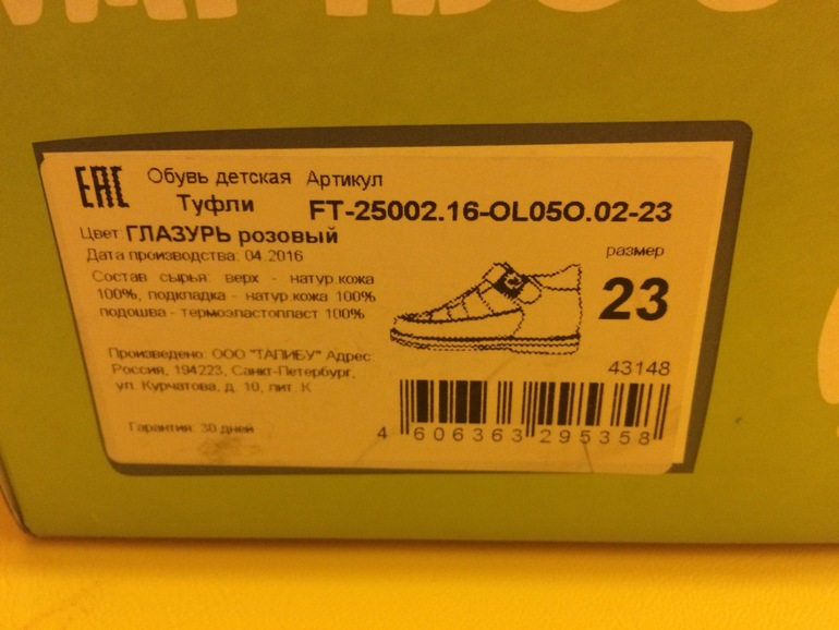 Продаю новые туфли для девочки TapiBoo 23 размер. Стелька приклеена и прошита, но согласно размерной сетке на 23 размер идёт 14,9 см. Измерение рулеткой показывает такую же длину.
