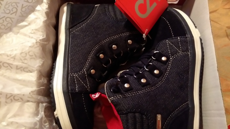Демисезон, цвет jeans, модель wetter. Маркировка 30 (до смайла 18,5см; полностью стелька 20см). В комплекте обычные и резиновые шнурки.