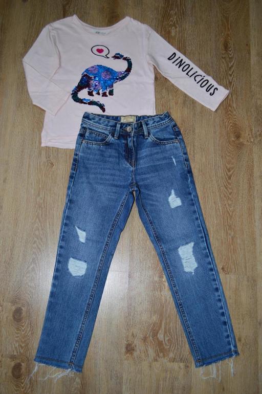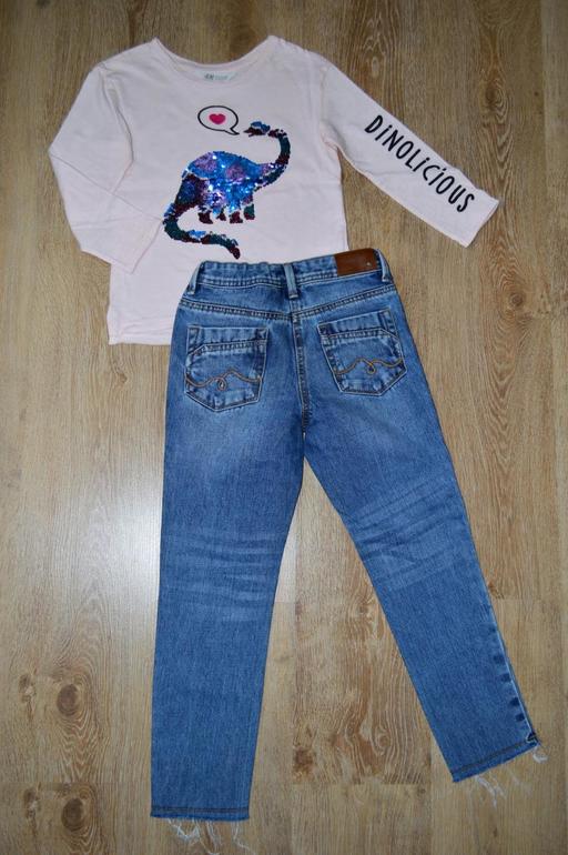 Одежда ДЕВОЧКИ 7-15 летКомплект: новые джинсы некст и топ из хлопкового трикотажа с рисунком из двухсторонних пайеток спереди. 1500р. г.Саранск почта