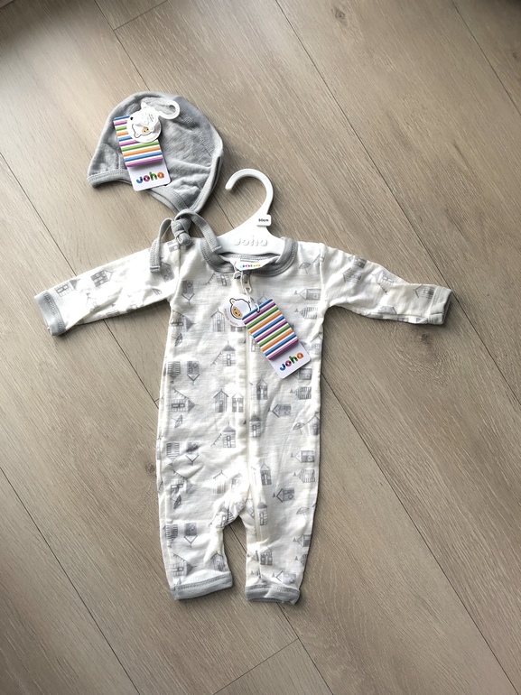 Joha новый комплект. Комбинезон и шапочка. Размер joha 50 (международный 50-56). Можно носить до 62. Шапочка размер 41 (1-4 месяца). По факту можно и дольше.