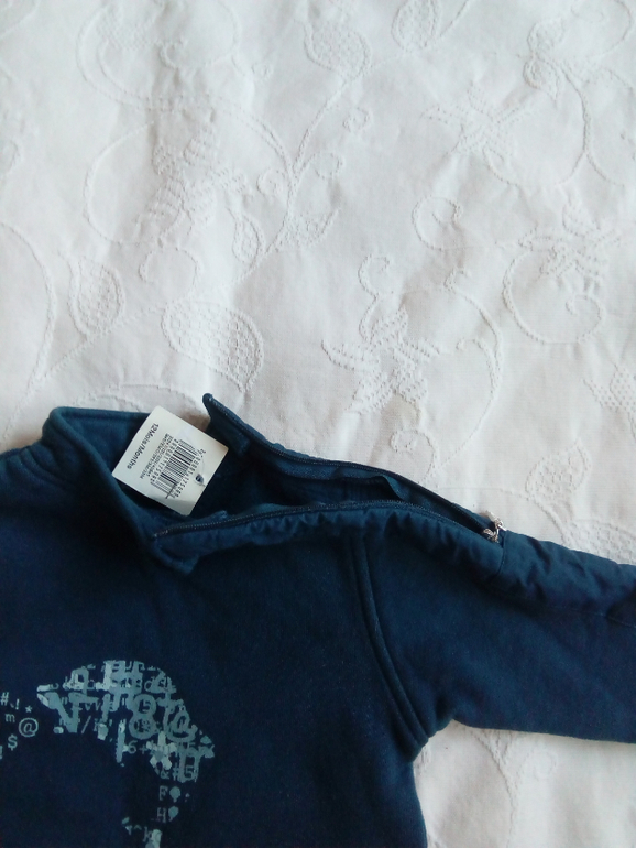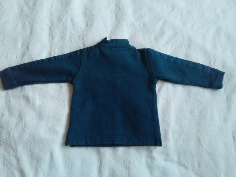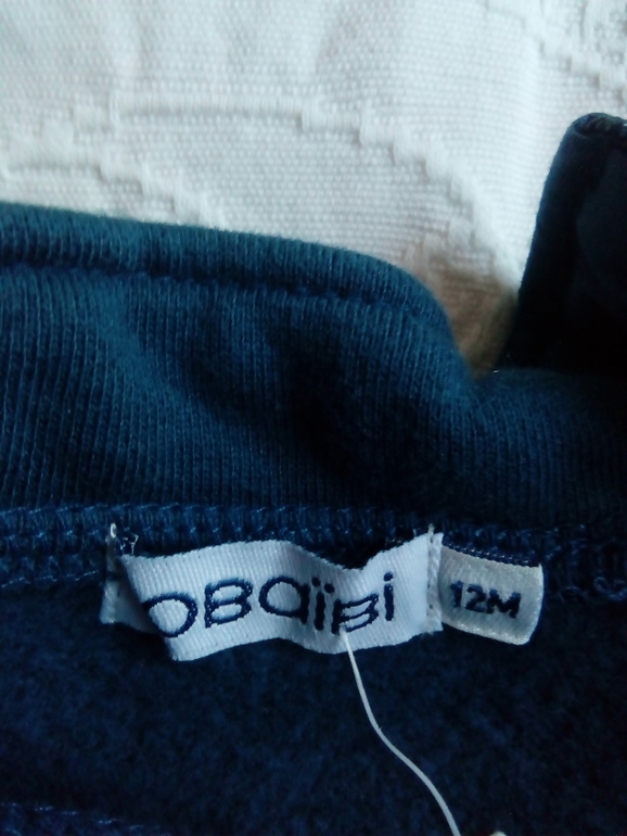 Новая французская толстовка фирмы Obaibi, на 12 мес. Внутри начес. Длина по спинке 32 см . Ширина в груди 25 см. По бокам маленькие разрезы. Воротник стойка. Оригинально застегивается на молнию на левом плече. Рукава отделаны другой тканью в тон.100 % хлопок . Цена: 300 руб + ваша доставка из Ставрополя.