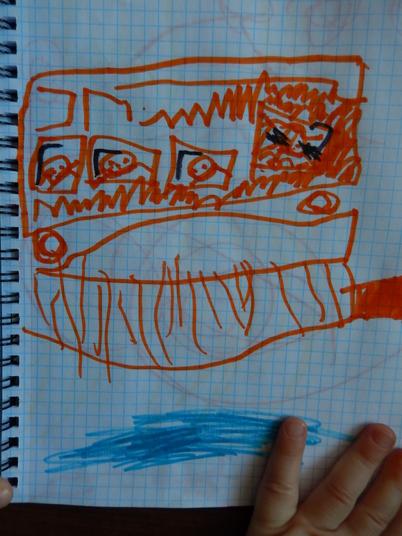 - Смотри, какая грузовичина тащится... многоколесная. - Илья нарисовал машинку.