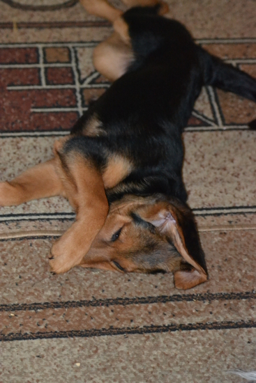 хороша! интересно кто был в роду? судя по цвету наверное доберы или ротвей. пробегали. лапы такие широкие. крупная будет. охранник!
