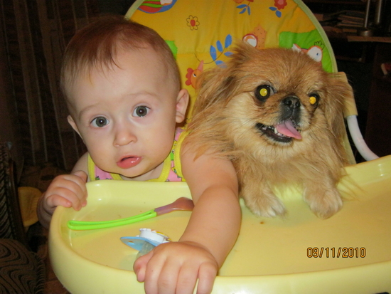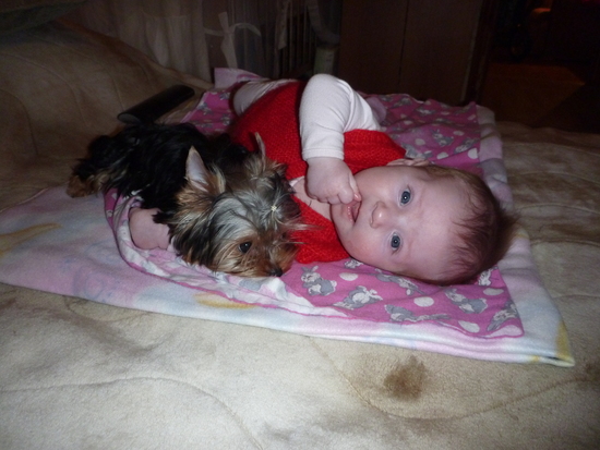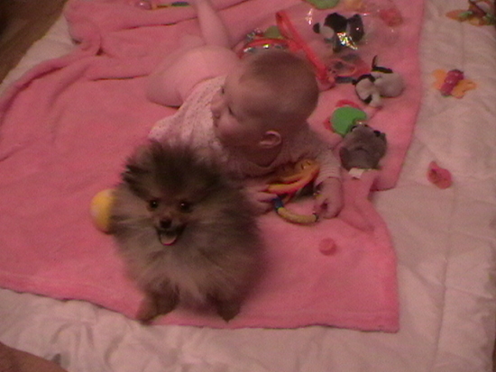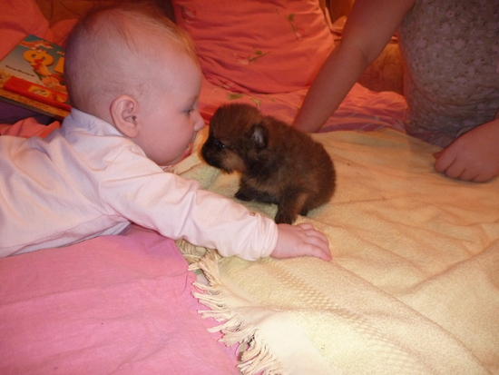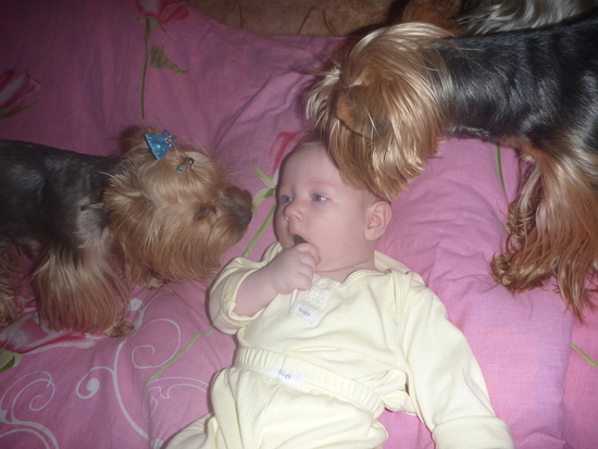 с самого роджения моя млышка с животными так как у нас питомник шпицов и йорков.взаимоотношения прекрасные особенно она без ума от шпицов.