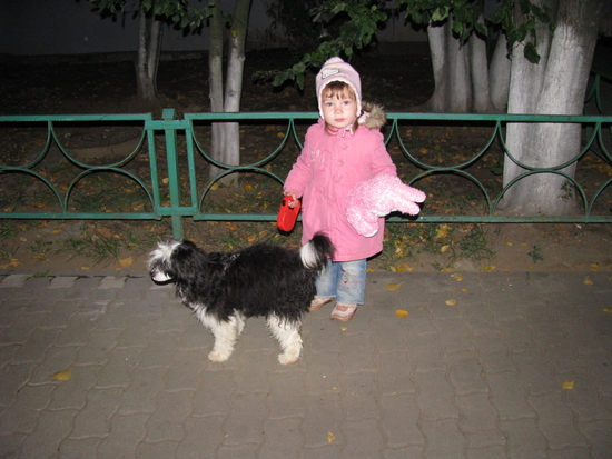 Смотрится собачка прикольно, запаха от нее нет, не линяет. НО она у них иногда писает на матрасы кроваток.