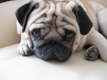 у нас мопс, линяет как зараза, постоянные проблемы с ушами, зубами, глазами. Но очень преданное и нежное создание.