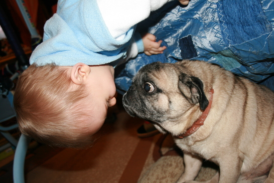 у нас мопс,Фрэд,ему уже 5 лет,доча его обажает!!!!!!очень дружелюбный,отзывчивый пес,любит поласкатся и покушать:))))из минусов:воняет,т.к складок много,и изо рта стало пахнуть.но я все мою,чищу и становится лучше.но это фигня,по сравнению с тем счастьем,которое пес дает:)а вот и он