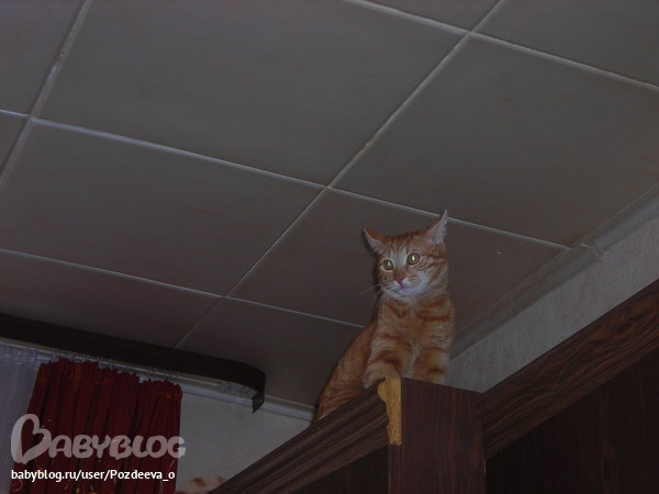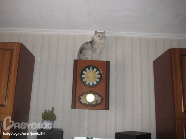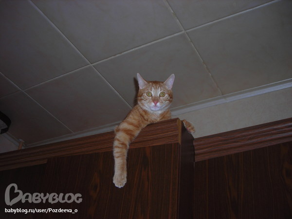 Кошки. Болезни, прививки, советы по уходуУ меня у одной такая дурища, или есть еще любители верхотуры? У меня стоит компьютерный стол, за которым я часто сижу, а по бокам шкафы, на верхней полке стола стоят колонки, так вот моя кошка постоянно сигает на стол ,потом на верхнюю полку, на колонки и на шкаф. Примерно вот так. Раньше еще часы висели, их убрала, потому что это вообще был трамплин с одного шкафа на другой, и вообще опасно, если они вдруг под тяжестью ее веса свалятся.Выглядит это примерно так, хотя это не моя кошка, это ее старшая сестра))) У них видимо это семейное.