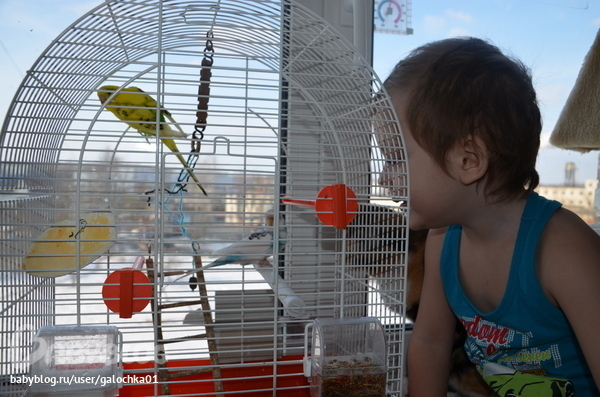 ПтицыКошка решила, что пора попробывать какие птички на вкус. Какой-то умник (а зовут его Ярослав) оставил открытой клетку и Сева с удовольствием этим воспользовался. Он и раньше пользовался, но тогда всё происходило под моим присмотром и кошку мы закрывали в другой комнате. А тут...захожу в комнату, Сева в полёте, Боня скачет за ним по всей комнате. Сева возьми да сядь на диван, а Бонька на него напрыгнула, вцепилась, хорошо я успела подбежать, можно сказать спасла от когтей....Сева меня даже передумал кусать, когда я его в руки взяла. Зато киса теперь сидит у клетки и сторожит....поджидает...ну и Яр там же