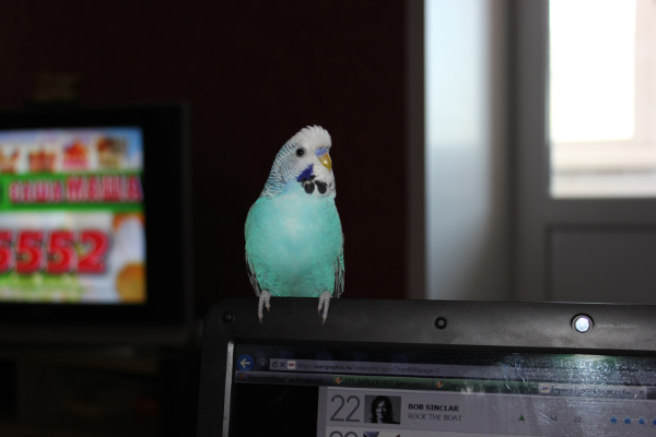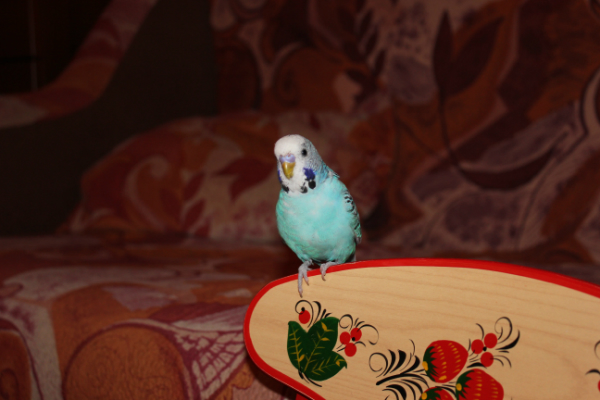 Какой красивый у вас попугайчик! А долго вы его учили говорить? Я просто не предствляю как можно птицу учить говорить, у меня никогда не было попугайчиков)