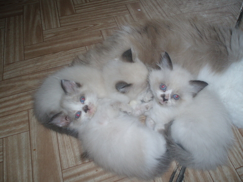 У меня тоже беспородные) У них мама-сиамец, а папа - перс. Ну ты видела. Так Ксюша сегодня по книге нашла кошек, похожих на них и теперь всем говорит, что они у нас Гималайские))))))))))