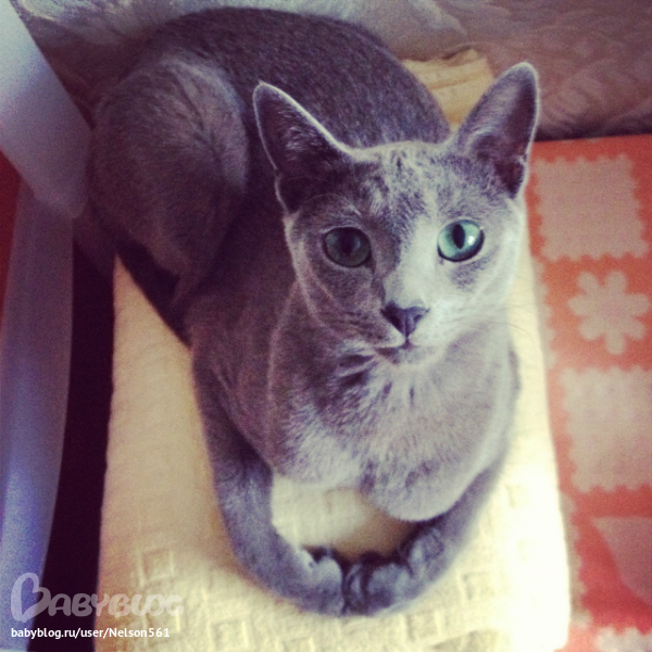 ой красавчик, у меня тоже кошечка русская голубая, прелесть а не кошечки, умненькие такие ласковые!!! а котик у вас просто прелесть!!! такой сЮрьезный мужчинка