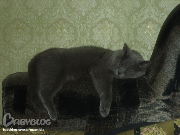 у нас такая же дама вислоухая,тоже голубая и так же спит))и мух гоняет
