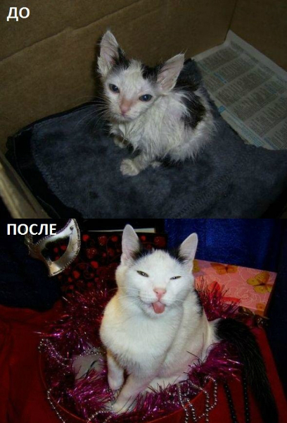 Помощь животным!Спасти живое существо, помочь снова поверить в людей - это благородное дело. Посмотрите, как меняются бездомные коты, попав в добрые руки.