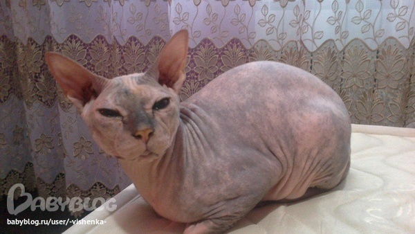 Наши любимцы!донской сфинкс девочка 2 года!!! кличка Муся!!! пока еще наверное не поняла всех прелестей данной породы!!! на данный момент могу сказать что очень ласковая киса и очень умная, к лотку приучена(ой за это больше всего боялась) ходит за мужем как хвостик и спит с ним и только под одеялом!!! были у вет.врача, проверели все! для глазок назначил какую то мазь, ушки почистил сам спец.средством, посмотрел шовчик(кошка стерелизована), все в норме, кушает все особенно помидоры она продать душу за них готова, моя прелесть Василиска пока психует, даже спит в другой комнате))) вообщем привыкаем к новому члену семьи!!! и еще девочки она постоянно спит, постоянно!!! ппц, и еще храпит а если не храпит то оооочень громно сопит, блин спать мешает как-то)))