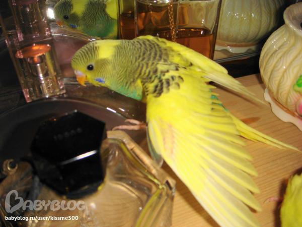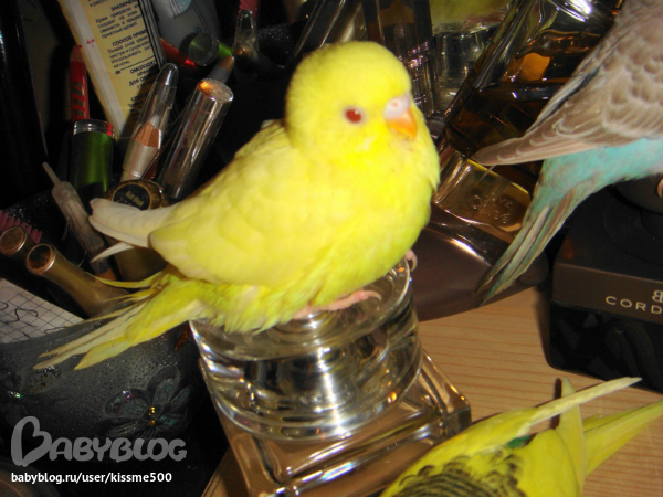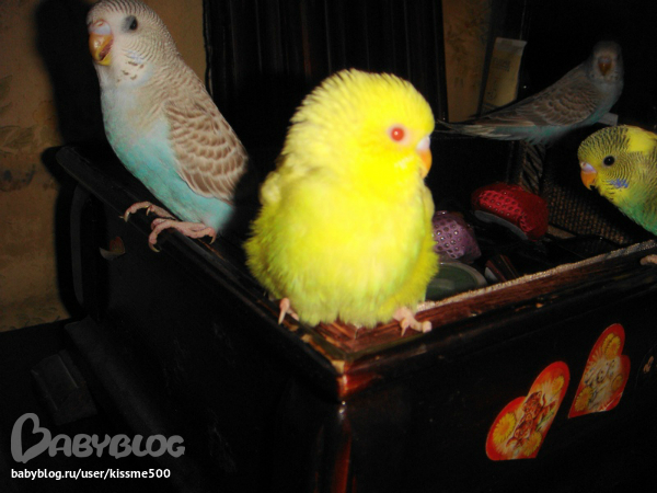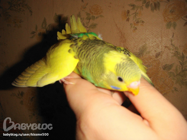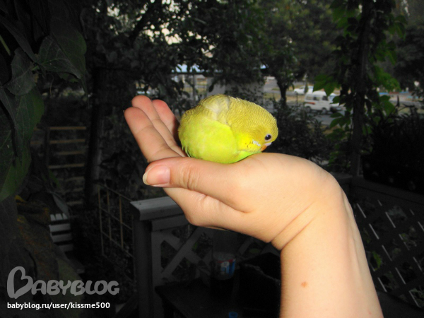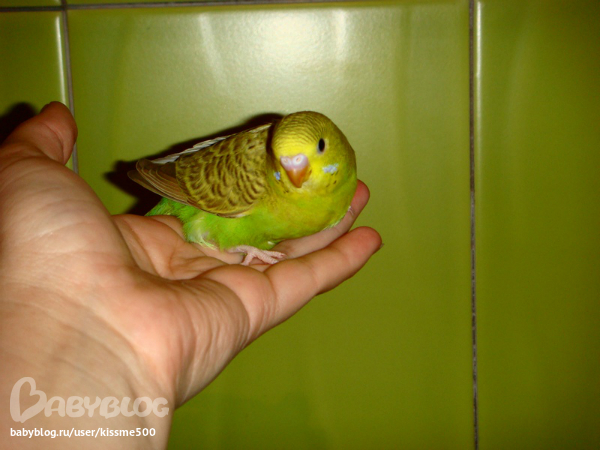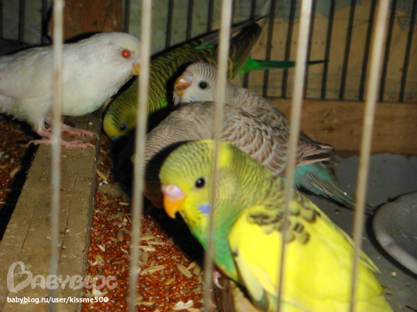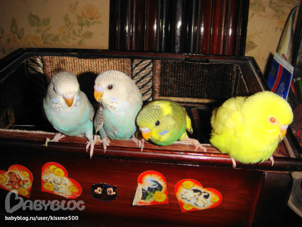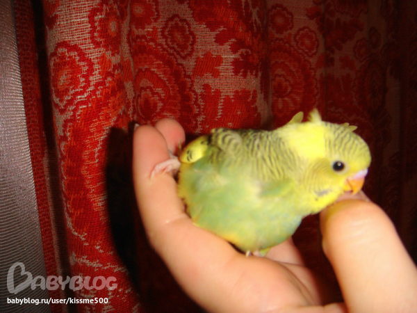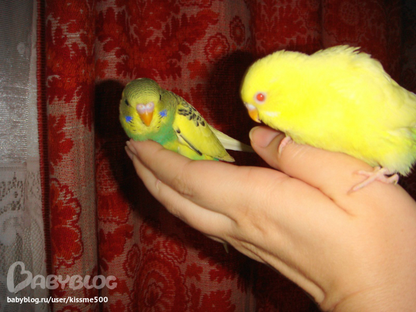 спасибо!это они пока малютки и толком летать не умеют.ну и плюс я их с руки кормлю всякими вкусностями вот они и бегают за рукой моей,только в клетку засуну а они уже облепят и кушают.щас подрастут тоже дикими станут.