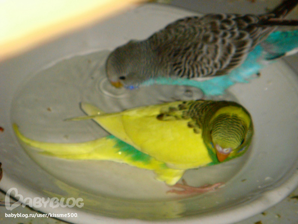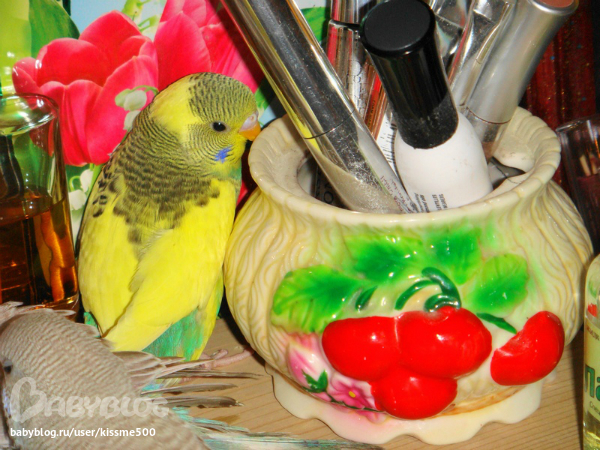 ТАК ОН ПОКА НЕ сидит на плече, боиться. а я как подхожу разговаривать, он начинает деловито бегать, то попить, по в кормушку. И еще почему-то он в корм закапаться хочет, прям с головой в него ныряет, это почему?
