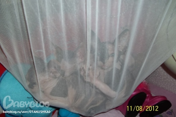 Оказывается очень просто(я подсмотрела как они выбирались), рядом у нас кресло...они сначала на кресло а потом, видимо хотели в кроватку, а угодили в такую ловушку...но вот интересно , как они все вместе, там оказались??? что всей толпой побежали??? буду наблюдать)))