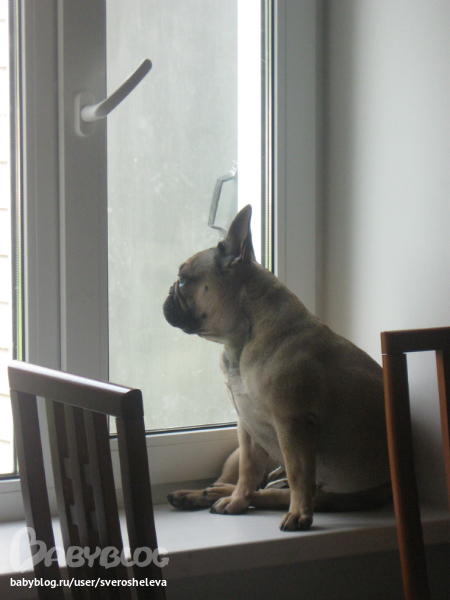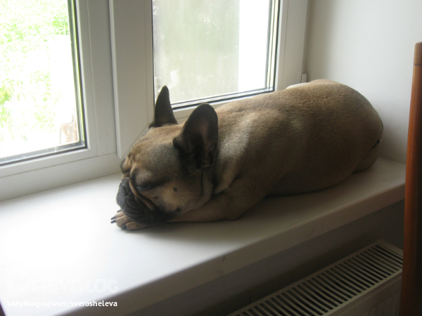 Собака у вас прикольная. С кошачьими повадками! Я таких еще не видела, сидящих на подоконнике. ))
