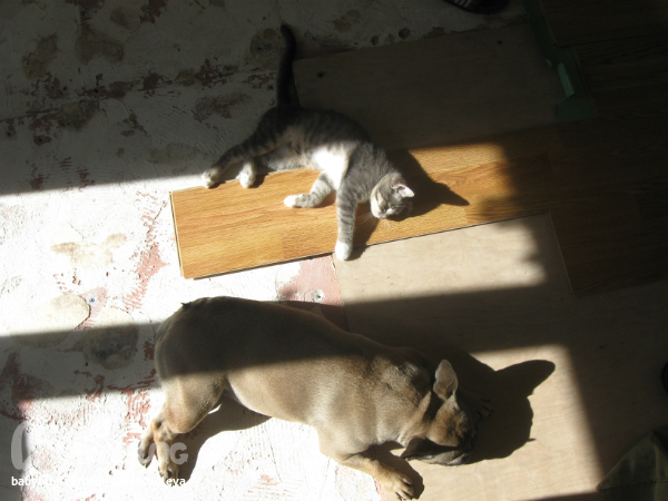 А Бульдог- сама доброта)) Я знала , что у меня такие девочки, и поэтому тоже согласилась на кошку в доме)) Средний очень просил)))