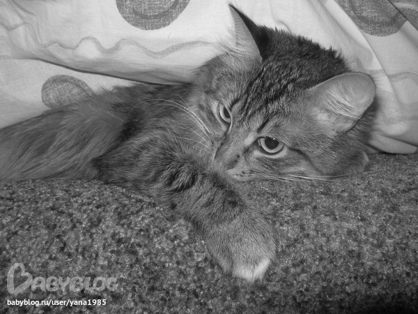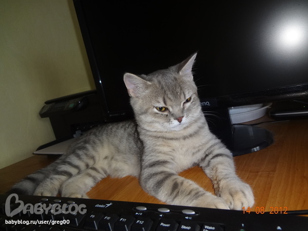 Какая скромняшка)))))))))) Наш, жирненький уже стал. И ревнивый. Стоит дочке проснуться, он уже летит с ором, чтоб я его гладила скорее.
