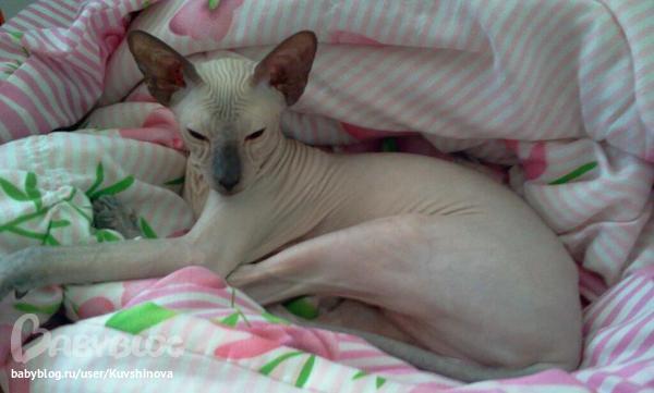 Красотка))Стала мечтать о сфинксе,когда мой мелкий пакостник стал везде оставлять белую шерть клочками)