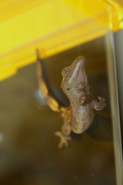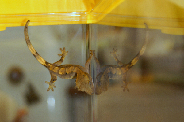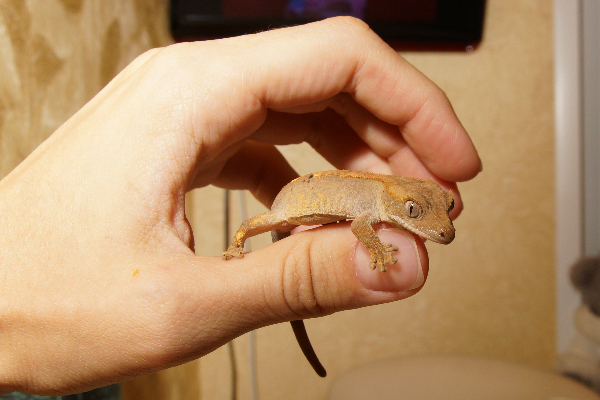 В отличии от ящериц, которых мы ловили на даче, геккон не такой пугливый, и когда берешь его в руки, он спокойно бегает по руке, или прыгает на другие поверхности. Но, как и ящерица, он может отбросить хвост, поэтому стараемся быть аккуратными :)