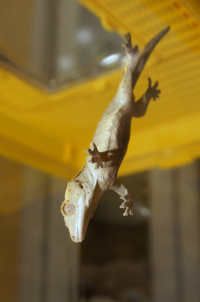 Несмотря на свою похожесть на крокодильчика, он абсолютно безобидный, и питается фруктовым пюре и сверчками. И даже теоретически не может укусить.