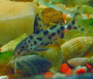 Я сейчас про него прочитала что он в природе питается насекомыми и улитками, в акве следует держать с рыбами крупнее его, иначе мелкие рыбки будут съедены...так что вполне он мог ее съесть. А так он не прилипала, а бахромчатоусый))) А кто еще живет в акве кроме него и улиток?