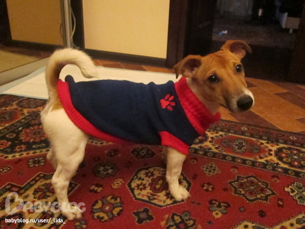 да) Он красавец))))) Вот сколько видела джеков все разные, а у нас прям как Майло))))) Мой любимка) Вот купила ему костюм и свитер....костюм теплый и не промокает, так нам в нем не нравится ходить, садится и все......вредничает, а в свиторе зато носится как угорелый)