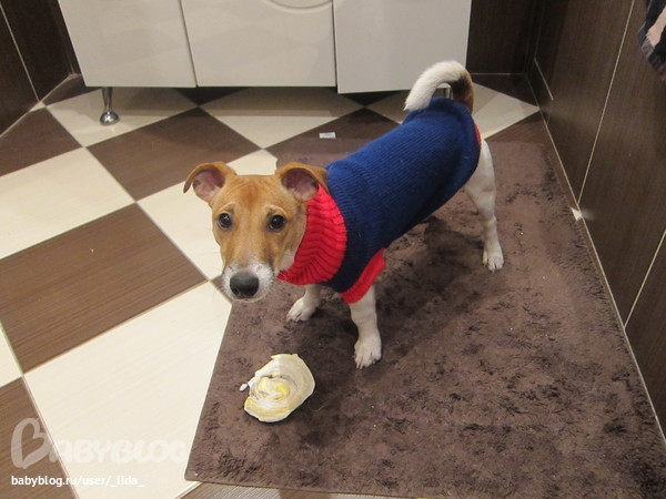 Одежда? Да потому что мы живем в переулке ветра.......меня то сносит по утрам особенно......а Бруно аж подлетает......боюсь что холодно ему......да и такой он красавчик в свитарке))))