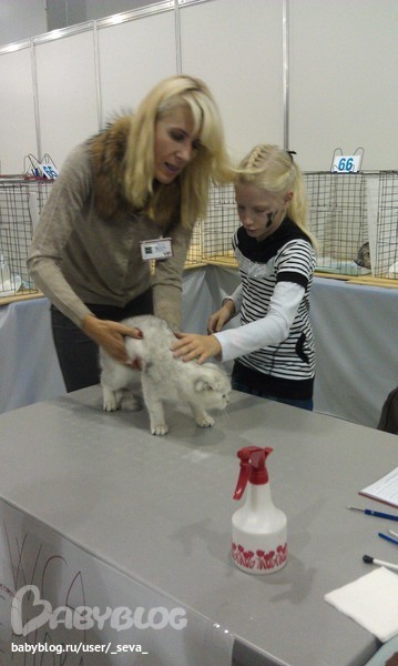 Кстати, о самой выставке. Было очень много участников, а еще больше зрителей. Причем, зрители многие ходили по выставке с полной уверенностью, что здесь все продают кошек-котов-котят. К нам постоянно подходили и спрашивали, сколько стоит такая красота, можно потрогать, погладить, пощупать. Дайте подержать и сфотографироваться. Когда говоришь, что не продается и нельзя подержать-погладить - недоумение, и сразу вопрос- а че пришли-то? Пришли - завоевать вершины Олимпа и собрать все награды !!! Для многих было открытием то, что здесь основное мероприятие - это именно соревнование и оценка питомцев экспертами. Ну, а кто-то и котят продает заодно (приятное с полезным, так сказать...)