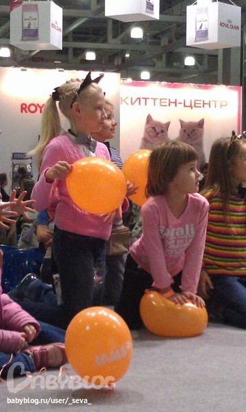 Для деток была организована шикарная развлекательная программа и я оба дня с трудом отлавливала Марусю в какой-нибудь кучке организованных рисованием, пением, танцами, выступлениями детей. Отлавливала для того, чтобы Маруся представляла нашу Симбу судьям. Потому что только у нее на руках Симба вела себя спокойно, на всех остальных она шипела, рычала и кусалась...