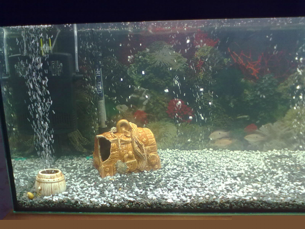 переселили вчера вечером,вода еще мутноватая чуток прям,оформления тоже пока нет поставила сундук из старого акваса , думаю все временно главное обдумать как все сделать красиво и функционально)))) главное рыбешкам хорошо и просторно......пока)