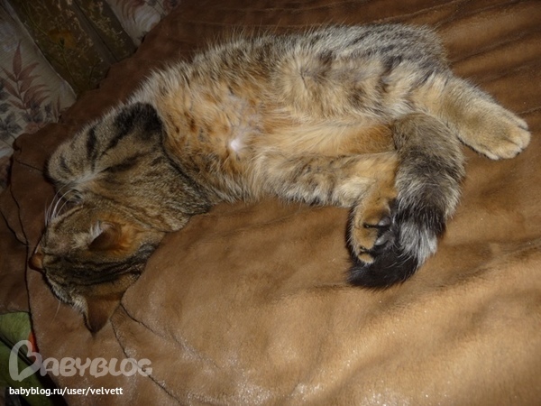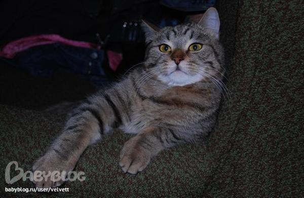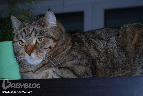 Обожаю его, несмотря на шерсть, котрая оседает на мебели, на когти, которыми временами дерет диван, своенравный и независимый характер - ну не любит он сюсюканья и тисканья - он просто настоящий кот, который гуляет сам по себе, мой любимый, самый лучший, полосатый кот!!!
