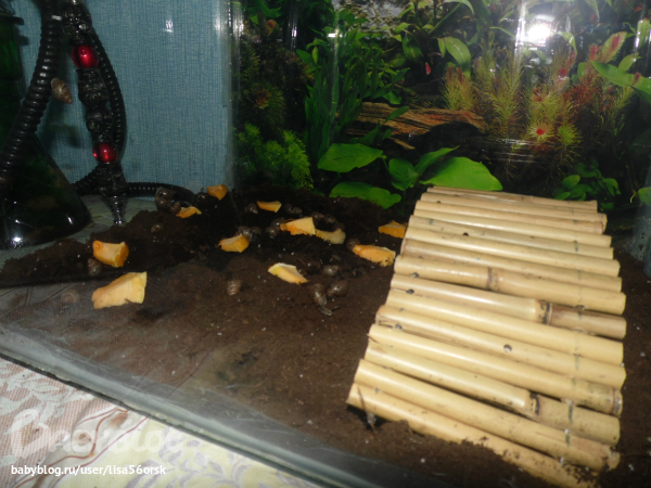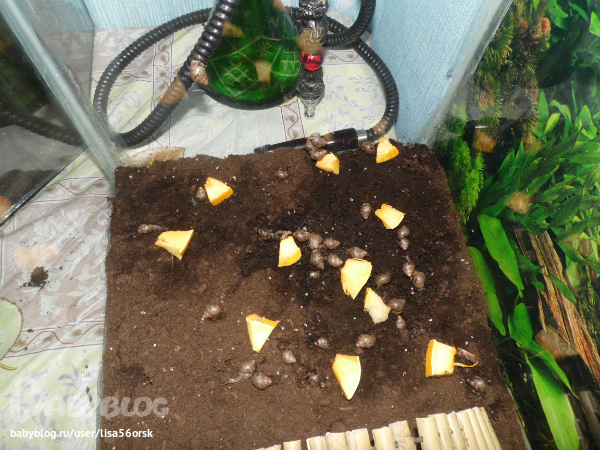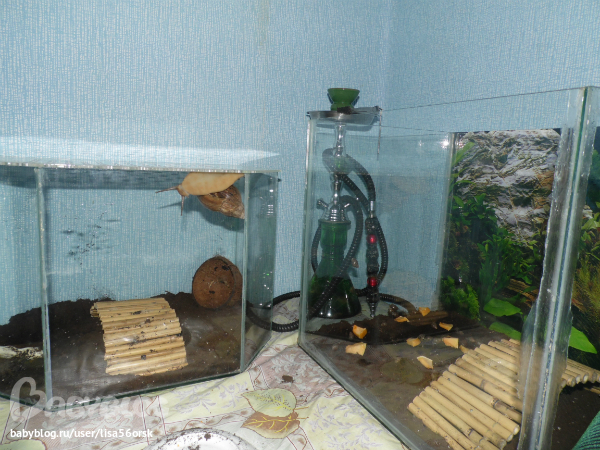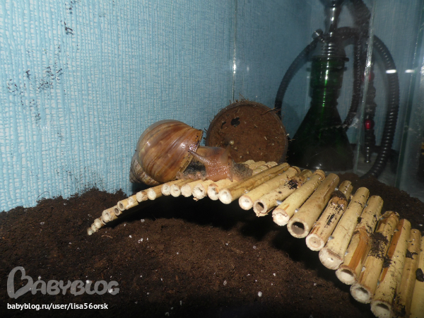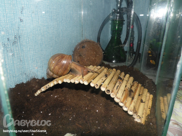 У Вас так аккуратно в их домике)))вчера были в доме творчества , видели подобных улиточек ,так это был ужас , в плане того , что все завалено грунтом , они все грязные полузарытые, смотрелось очень не эстетично(( я еще подумала , как таких можно дома держать ... Оказывается , еще как можно)))