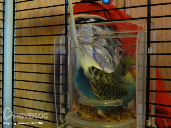 А вот еще одна смешная привычка Гиппи)) Залезает в свою кормушку и сидит там, может думает, что это гнездо??