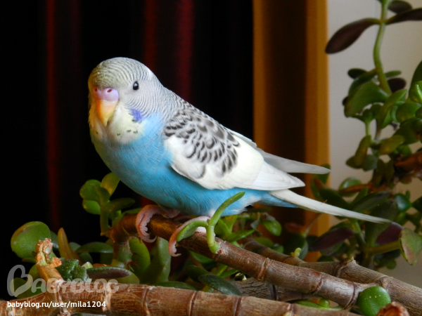 Наши любимцы!Да, да!!! Долго меня муж с дочкой уговаривали, сначала Аленка хотела собачку (йорка) но собачку мы ей пообещали, когда сама сможет за собой ухаживать и одеваться (а то мне еще один ребенок достанется), потом на морскую свинку меня разводили. Сначала я вроде не против была, но потом почитала отзывы, статьи о них, оказывается на свинок может быть аллергия, и к тому же им большая клетка нужна и опять же возни с ними много. Остановились мы в итоге на попугайчиках, так сказать золотая середина)) Папа с Аленой клятвенно мне пообещали сами убирать за ним клетку.