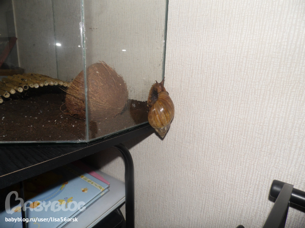 Улитки, черепахи, рептилииВот так моя радость гуляет)))А меня аж пот прошиб когда увидела,бежала к ней сломя ноги,а перед глазами страшные сцены как она падает.Но упасть не успела,я ее еще и ели сняла)))