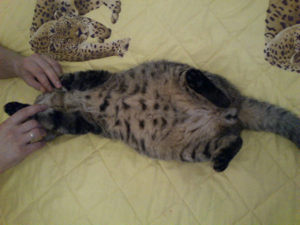 Кормили про план для котят, но все же переодически чего нибудь стаскивал со стола или детской тарелки. И в один миг, наверно за недели три, наш Марс стла ШАРИКОМ. Он реально круглый в обасти живота. Живот как надут внутри, те жира нет подкожного. Котэ не беспокойный, живот вообще не полезненный, щупай, мни. Ест, пьет, срет все норм!