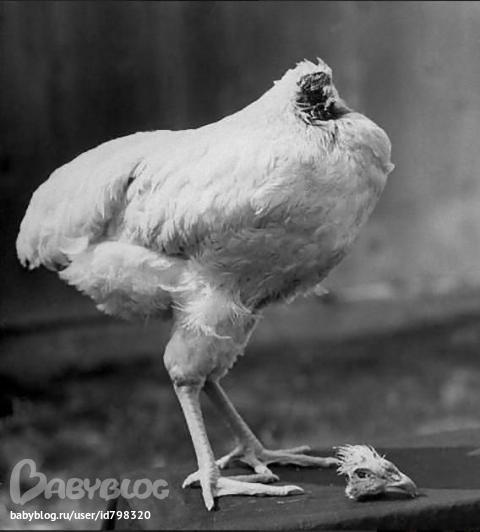 Майк, безголовый петух, проживший полтора года без головы, точнее без большей её части. В сентябре 1945 года, фермер из штата Колорадо, пошел во двор по просьбе своей жены, что бы выбрать цыпленка на ужин. Роковой выбор пал на нашего героя. После удара топором, фермеру не удалось убить птицу, а лишь отрубить ему часть головы, причем осталась нетронутой основная вена и часть ствола головного мозга. Фермер Ллойд Олсен не обратил на это особого внимания, потому что петух сначала не двигался, но потом встал и пошел. Удивлению Ллойда не было предела, он, конечно, видел, что бы курицы бегали с отрубленной головой, но это происходило совсем непродолжительное время, а здесь петух даже не думал погибать, и незадачливый фермер решил сегодня его не трогать.