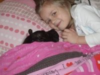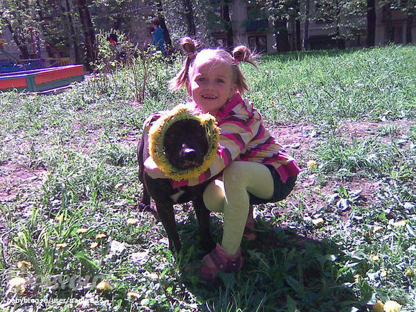 У меня стаф, сука, 10 лет, ребенок ее мучает, она терпит, даже кости свои ему отдает, а он ей-сушки, печеньки и игрушки.
