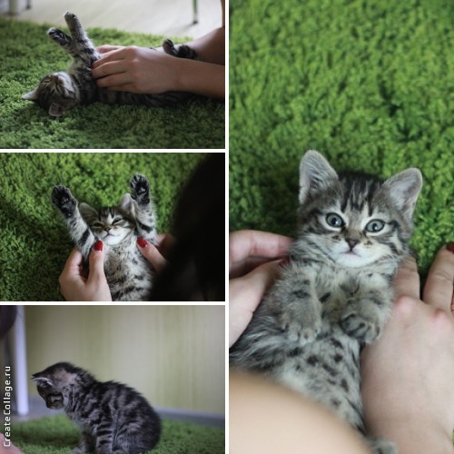 Вчера муж принес домой котёночка 1,5 месяца, девочка. Очень долго хотели завести зверушку, любящую человека несколько больше, чем наши дегу)) но всё не решались. Вчера муж посмотрел объявления и пока я была на работе поехал и забрал. Кошечка очень красивой окраски, хозяева говорят, помесь с британцем (но я не верю... или успокойте меня, что что-то в ней есть и муж не зря потратил несколько тысяч......)
