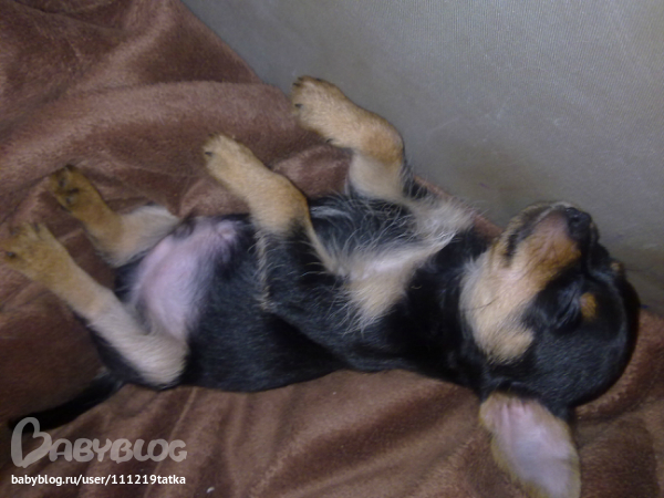 вот и я смеюсь на этим, у него такое ощущение что под мышками волосенки ростут, вообще г\ш. а там х\з, у заводчицы там такое творится, я вообще боюсь как бы он не "плод любви" ( т.к она разводит 2 породы, чихов и йорков),но нам это не принципиально, нам не для разведения и не для выставок....