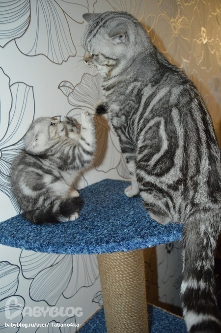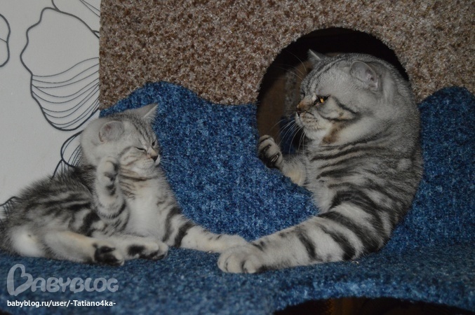 Наблюдать конечно за ними смешно... Перс стал большим лентяем, а Кира пытается с ним играть: нападает и теребит его хвост) А ведь сам в её возрасте был ну таким шкодиной...а сейчас нам бы только поспать да поесть))))