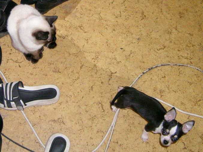Да спасибо. Буду пробовать учить его не лаять где попало))) А на кота не лает, просто сидит ждёт когда тот спрыгнет из того места, куда мелкому не допрыгнуть.